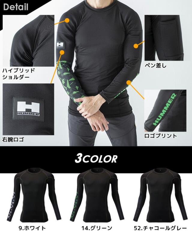 インナーシャツ メンズ 軽量 ストレッチ 速乾性 アタックベース 907015 春夏 コンプレッション インナーウェア 作業服 作業着 ユニフォーム HUMMER【送料無料】