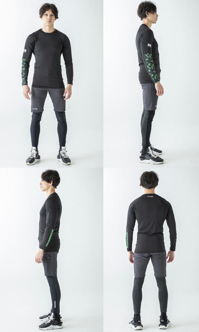軽量で弾力性のある肉厚ニット素材を肩部に配したハイブリットコンプレッション。