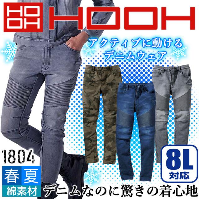 デニム カーゴパンツ ストレッチ 蛇腹 パンツ 1804 ズボン 作業着 作業服 鳳皇 村上被服 HOOH【4L-8L】