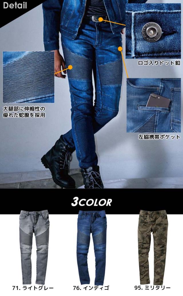 ストレッチなので動きが自由自在、アクティブに動けるデニムウェア!