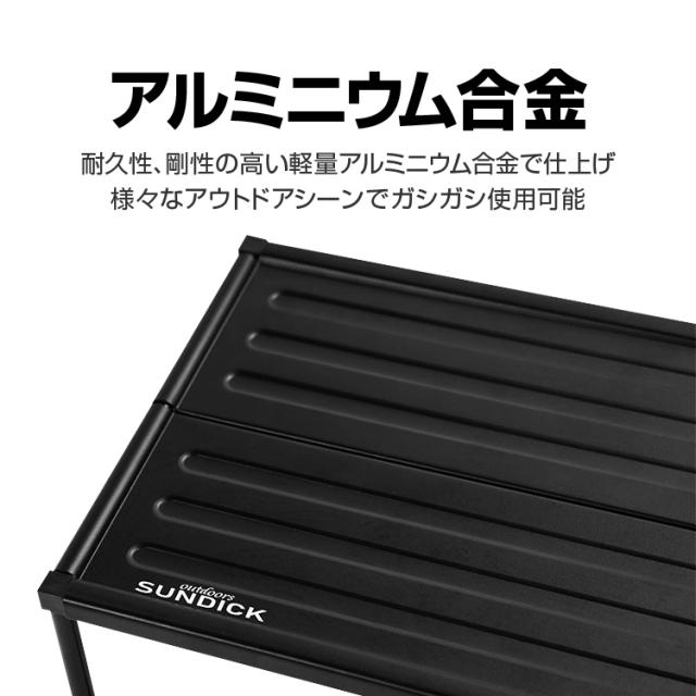 耐久性、剛性の高い軽量アルミニウム合金で仕上げ、様々なアウトドアシーンでガシガシ使用可能