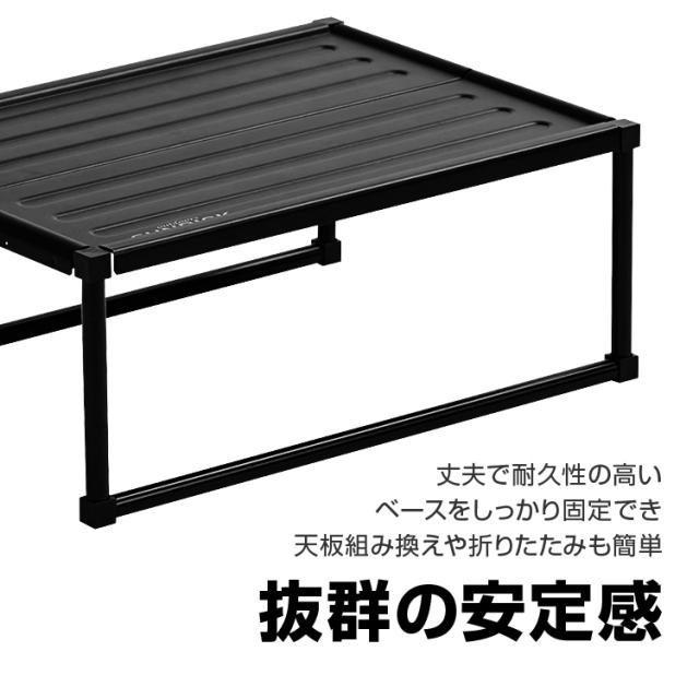 天板をサイドに取付けでき、テーブル、テーブル+風除け、ウィンドシールド等幅広い用途で活躍