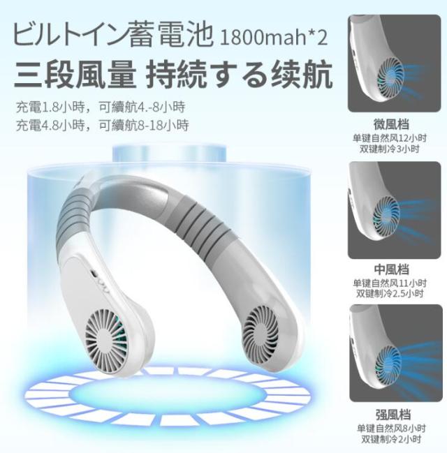 夏新作 扇風機 首掛け クーラー ハンディ 首掛け扇風機 携帯扇風機 冷風機 3段階 最大18時間持続 miniネック冷却クーラー