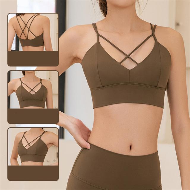 女性ナイロンヨガブラ衝撃吸収バッククロスストラップ下着バタフライデザイン大型スポーツ統合フィットネスブラ
