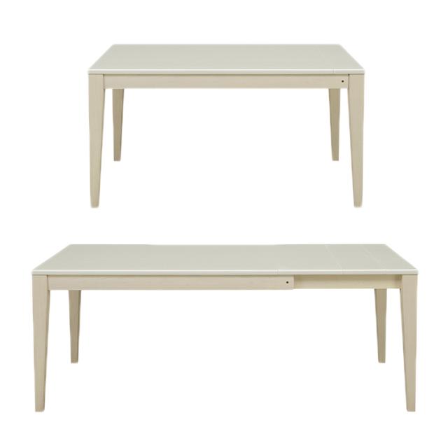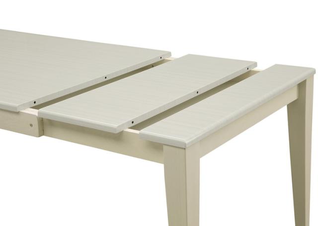 4段階に伸張可能なダイニングセットです。テーブル幅130cmから伸張用天板20cm・30cmの2枚を使い