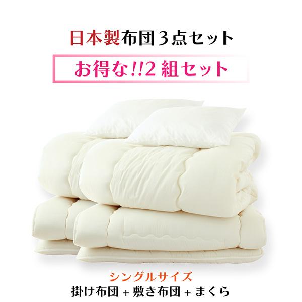 【2組セット】 布団セット 3点セット シングル ロング 掛け布団 敷き布団 枕 日本製 新生活応援 ポイント消化