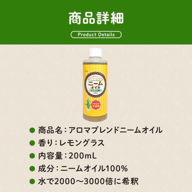 アロマブレンド ニームオイル (レモングラスブレンド) 200ml ニーム 農業 農薬 虫除け 業務用 原液 園芸 薔薇 害虫対策 無農薬 植物の保護 土壌改良に 畑 虫対策 アブラムシ ガーデニング 野菜 トマト きゅうり