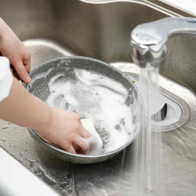 高耐久のストーンコーティングで、食材がこびりつきにくく、汚れが落ちやすいです。焦げ付いても、水につけるだけで汚れがスルリと落ちやすくなります。