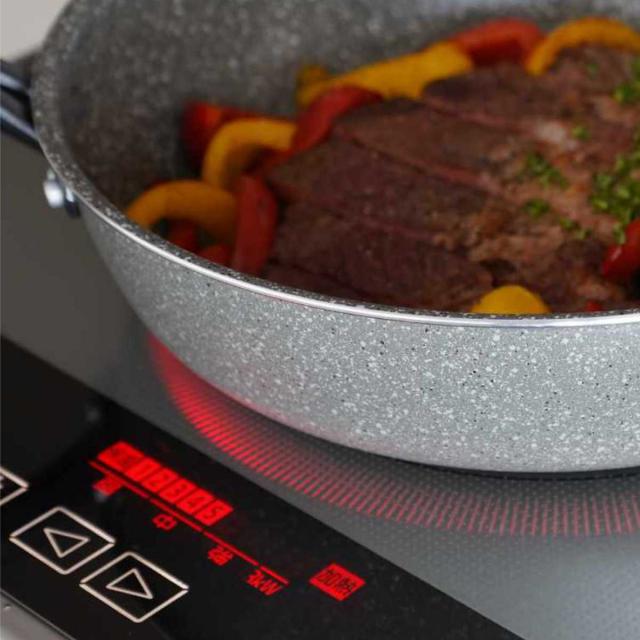 ●耐久非粘着性・耐摩耗性・耐食性がとても優れたストーンコーティングで、こびりつきにくさが持続します。