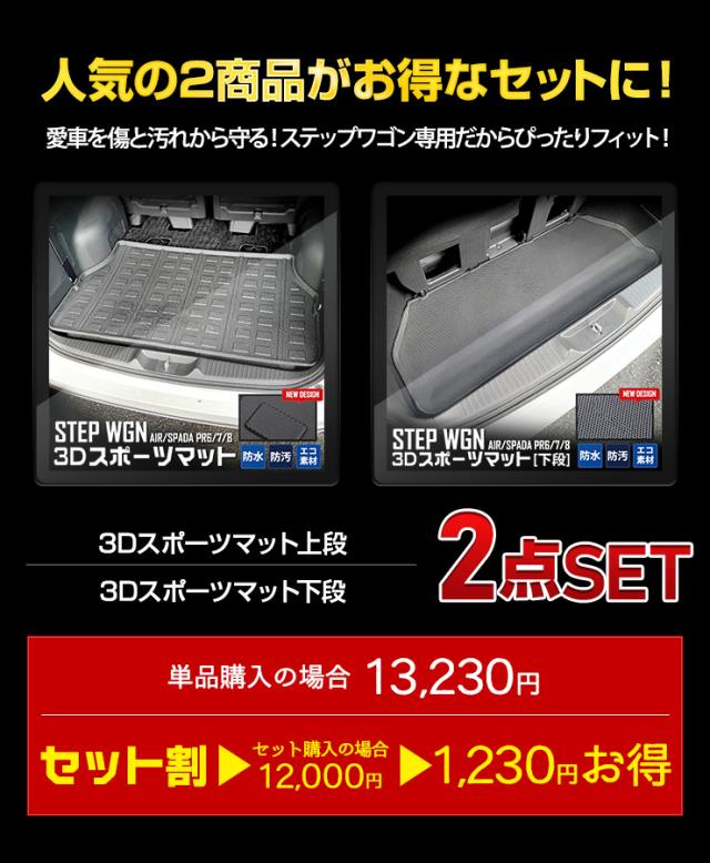 ステップワゴン スパーダ エアー RP6/7/8 専用 3D スポーツマット 上下 2点セット ラゲッジマット ラゲージマット ラゲッジ STEP WGN AIR SPADA ホンダ HONDA アクセサリー 内装