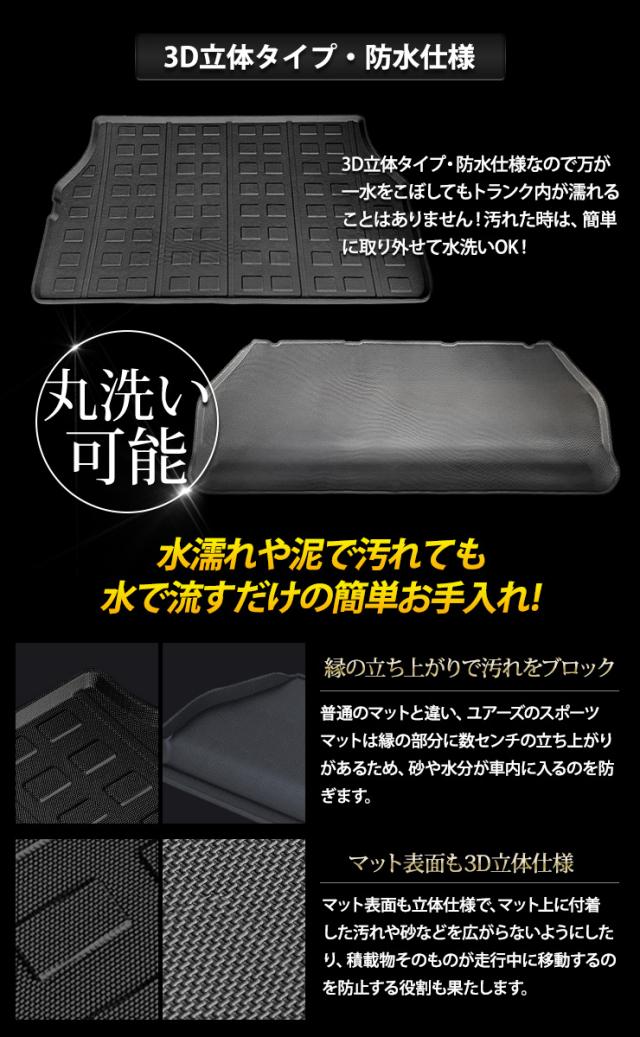 | 商品詳細 | 置くだけの簡単設置で汚れや傷からトランク内を保護する3Dスポーツマット。