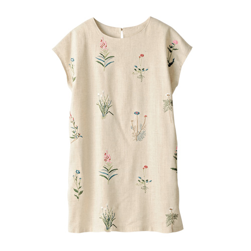 美しい草花を刺しゅうした麻混のチュニック。