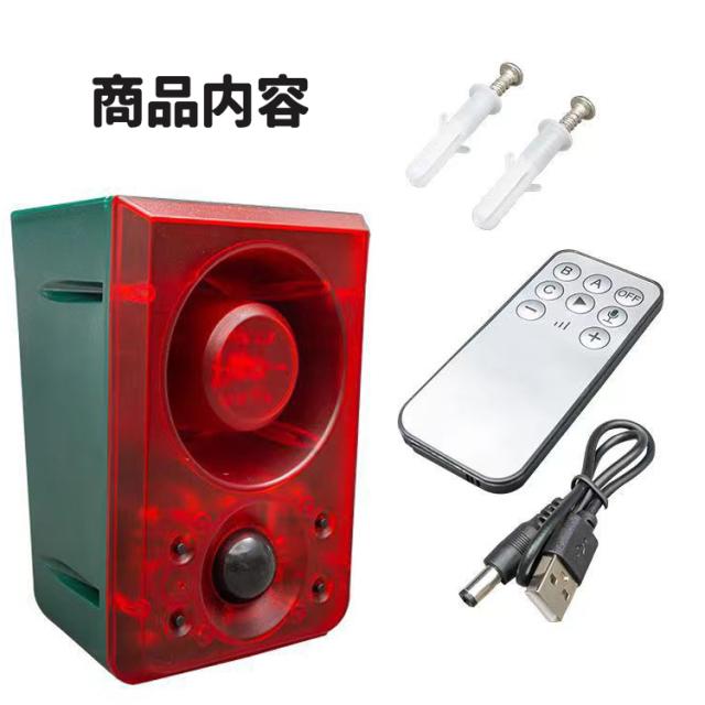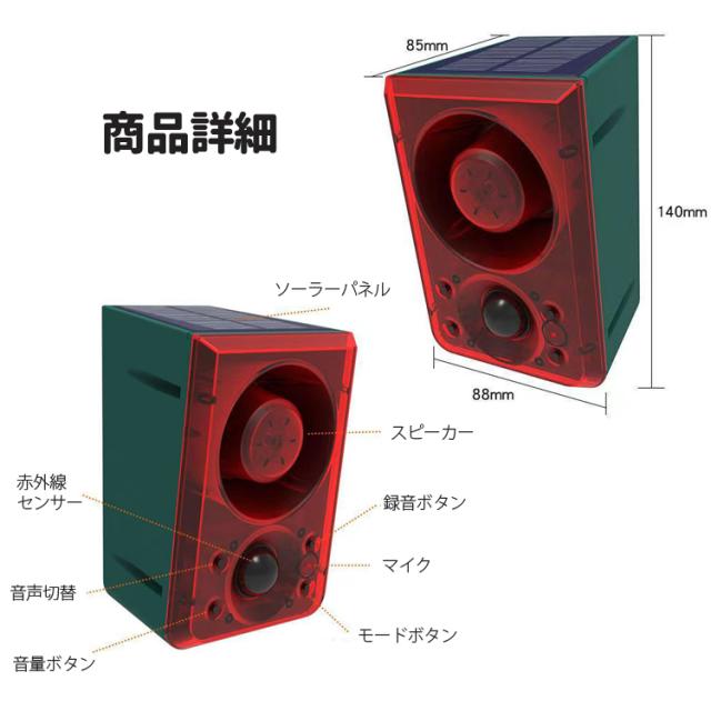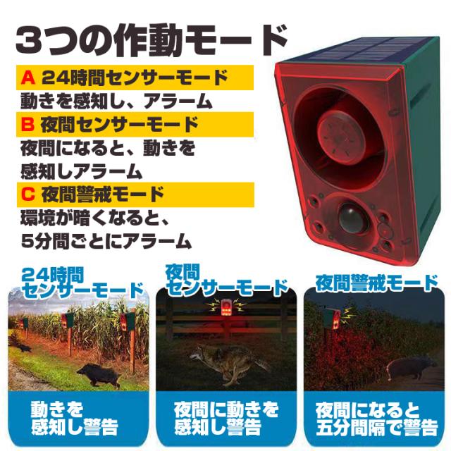 ソーラー充電式 エコー防犯アラーム USB充電も 三つ警報モード 動物撃退 害獣 防犯 警報器 ドアベル 録音再生機能 リモコン付き クマ対策 SALM6IN1