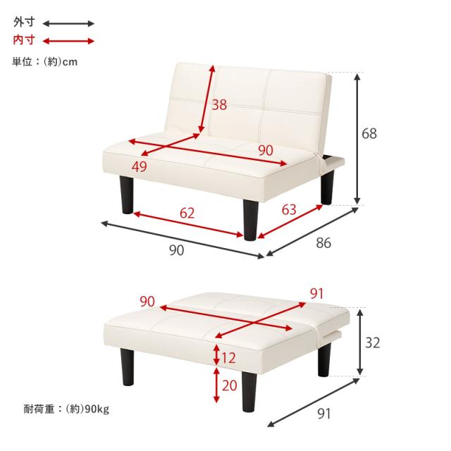 ■サイズ:(約)幅90×奥行86〜91×高さ68〜32×座面高32cm■素材:構造部材:天然木、脚部:塩化ビニール樹脂、張地:合成皮革