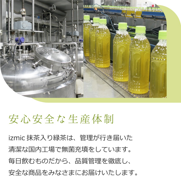 【商品詳細】izmic抹茶入り緑茶は、「丁寧につくられた美味しいお茶を、手軽に毎日飲んでほしい。」そんな想いからつくられました。厳選された国産茶葉を使用し、鮮やかな緑色が美しい緑茶です。