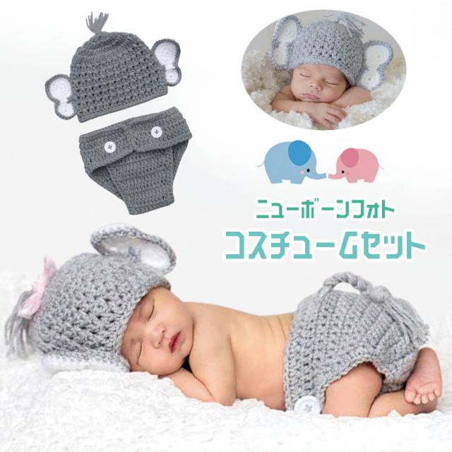 ニューボーン フォト ベビー コスチューム ゾウ 衣装 ニット 帽子 セット 月齢アート 男の子 女の子 寝相アート バースデーフォト おひるねアート インスタ映え 写真撮影 撮影小物