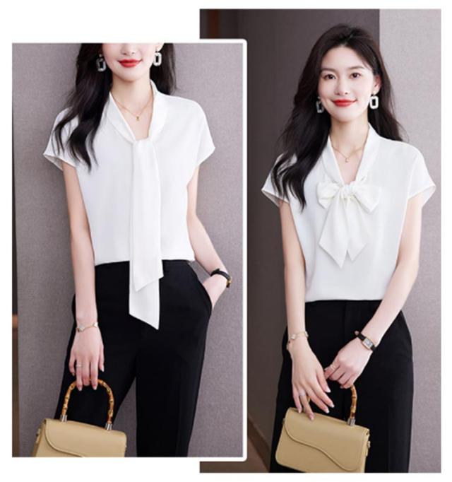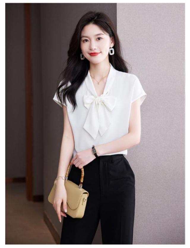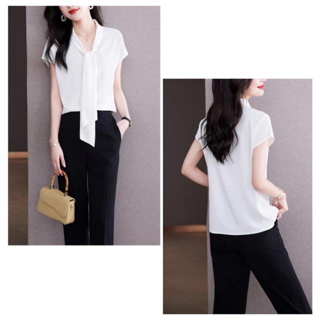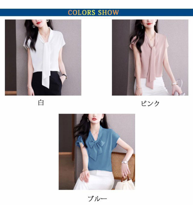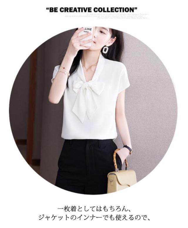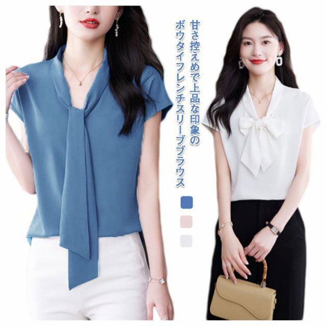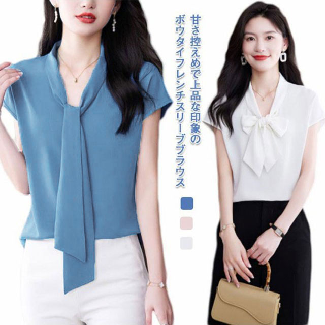 ボウタイブラウス ブラウス ボウタイ 半袖 レディース トップス リボン リボンブラウス フレンチスリーブ フォーマル オフィス カジュアル ビジネス 母 ママ カジュアル 入学式 フォーマル 通勤 上品 シンプル きれいめ 送料無料