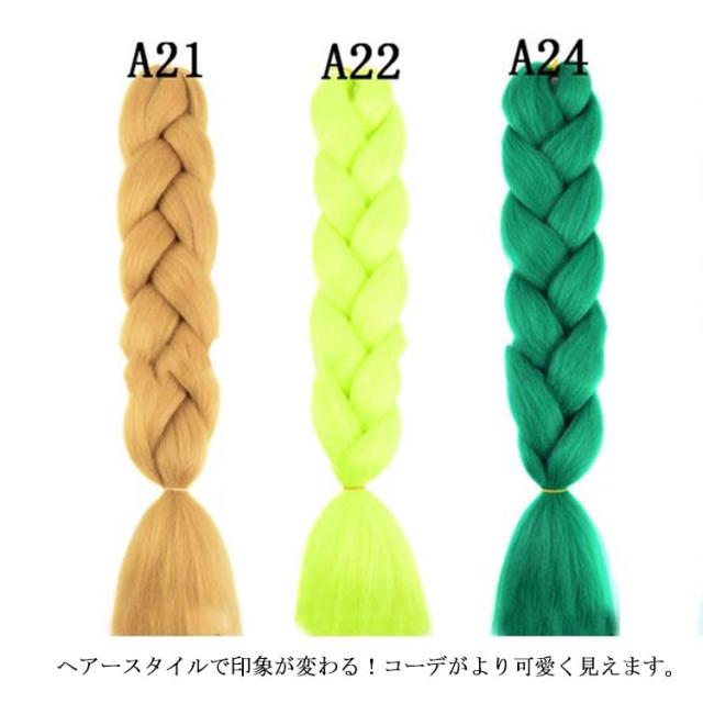 | コーンロウやブレイズに使えるワッフル加工エクステ! 20色の豊富なカラバリでオリジナルアレンジができます。 全体に編みこんでグラデーションを演出したり、ポニーテールにアクセントとしてつけても目立ちます。 1回に使う量は、そんなに使わないので何回も好きな色で楽しんでいます。 余ったエクステの束は、元のように三編みにしておくと絡まないでキレイに保存できます。 ヘアースタイルで印象が変わる!コーデがより可愛く見えます。 普段のヘアチェンジにはもちろんダンスやフェスなどイベントでも活躍間違いなし! | |