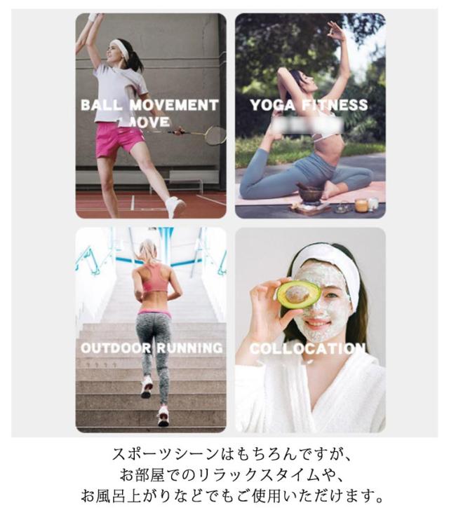 | 運動時に気になる額の汗を素早く吸収する、抜群の吸汗性能! 汗止め効果も抜群なので額から汗が流れ落ちる不快感もなく、しっかりと運動に集中できます。 速乾性、通気性の優れた素材を使用している為、様々なスポーツでお気軽にご使用いただけます。 スポーツシーンはもちろんですが、お部屋でのリラックスタイムや、お風呂上がりなどでもご使用いただけます。 | |