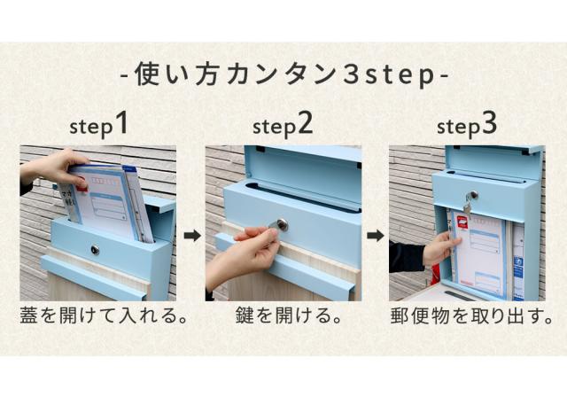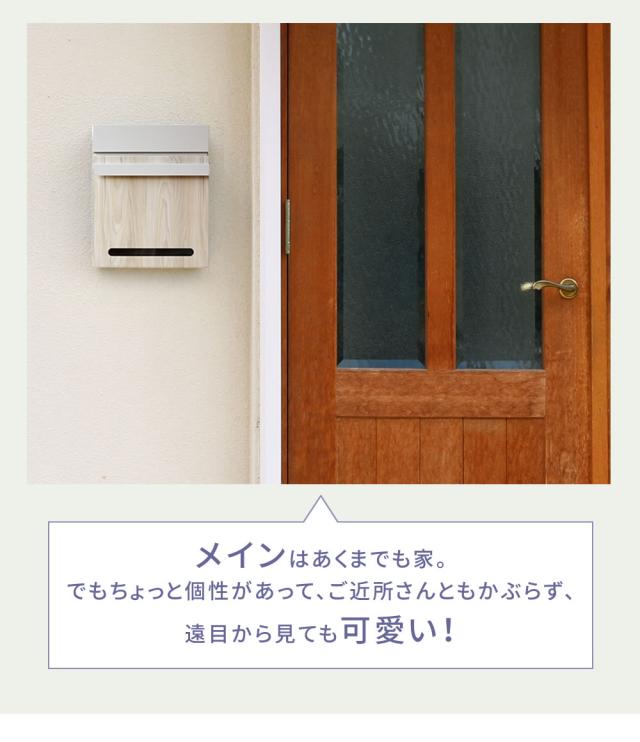スチール×木目調のシンプルな形状が、可愛くて癒されます。投函口が蓋で隠れているので、雨や埃の侵入を防ぎます。