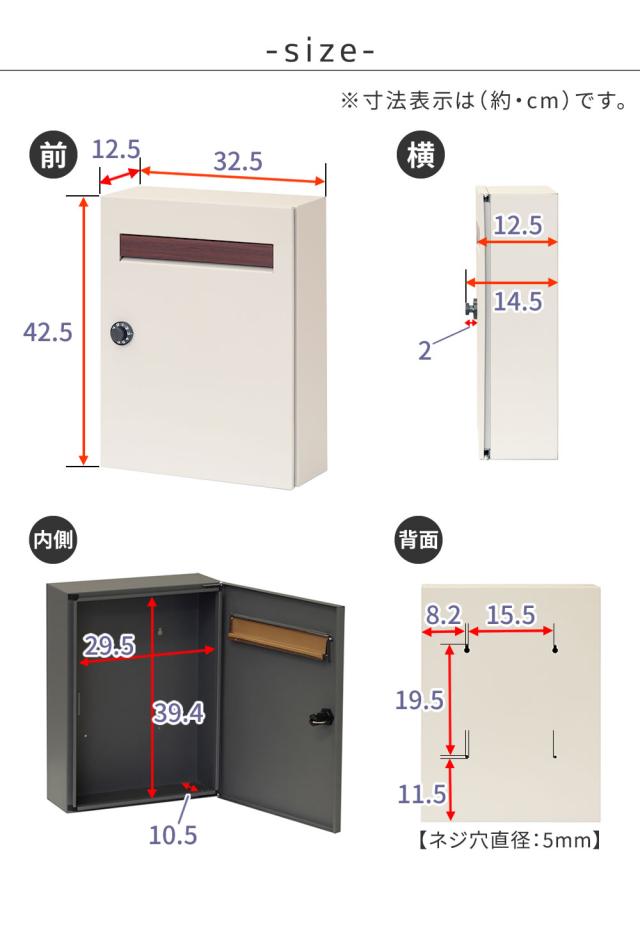| ■サイズ(約) | 本体:幅325×奥行145×高さ425mm 投函口:幅260×高さ35mm |