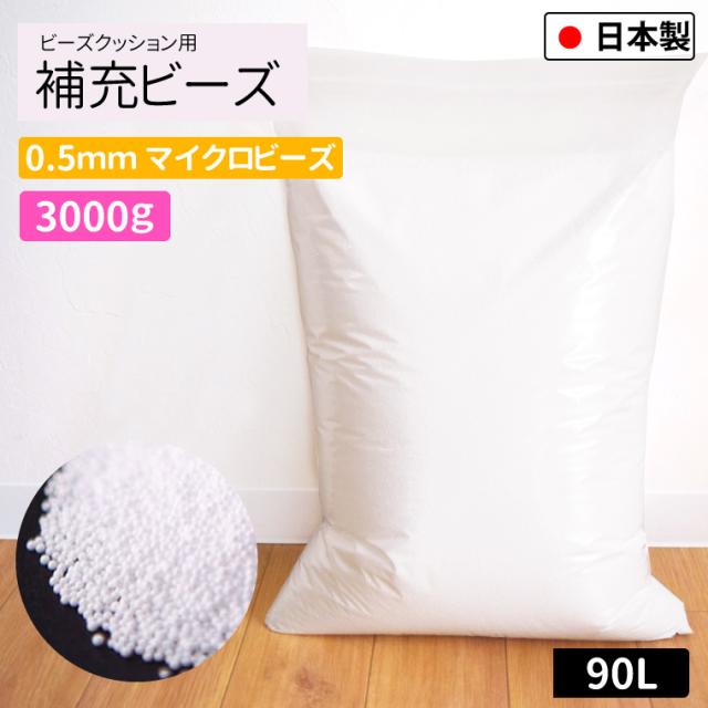 補充用ビーズ 0.5mm 3000g 国産 極小 大容量 約90L ビーズクッション用 日本製 発泡ビーズ 中身 中材 詰め物 お手持ちのクッションの補充に へたりにくい