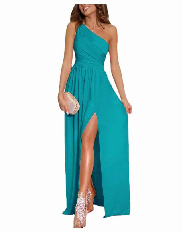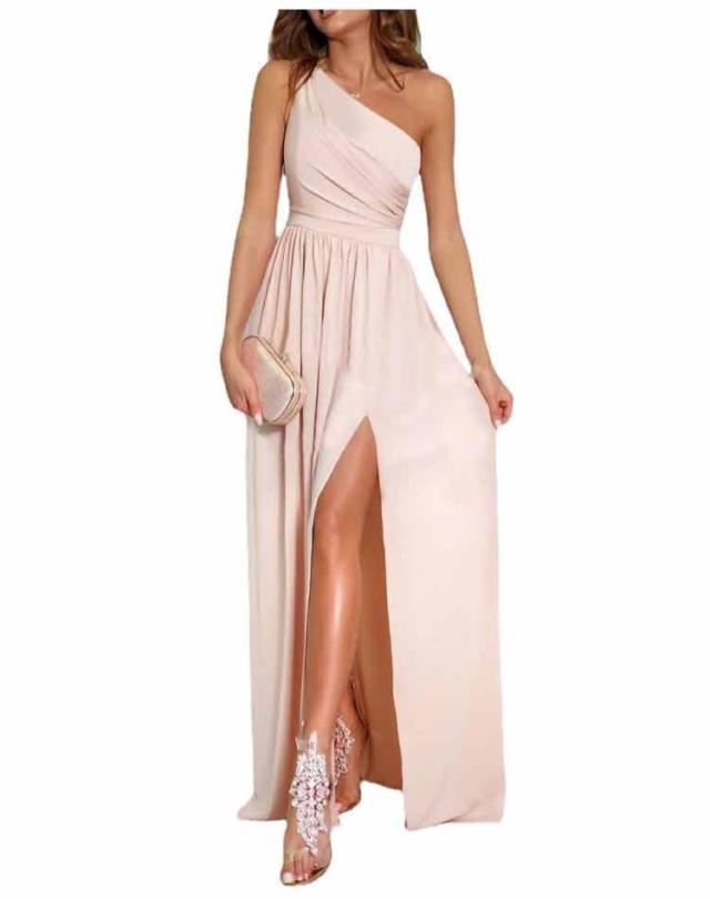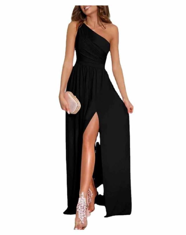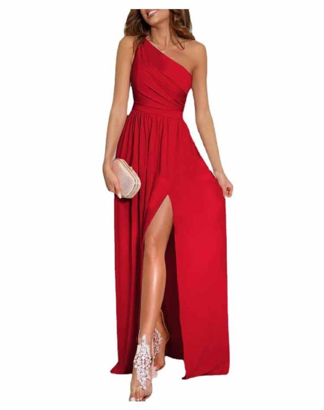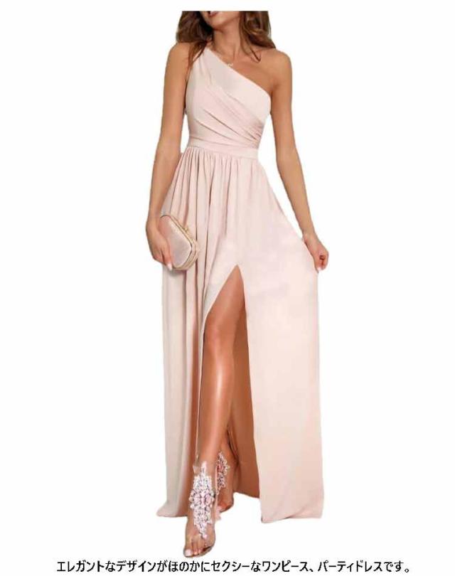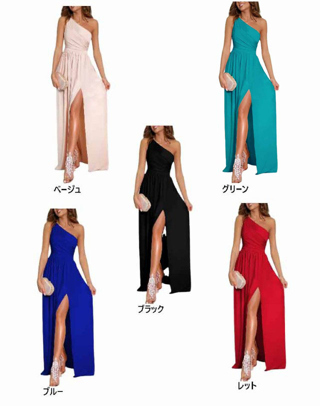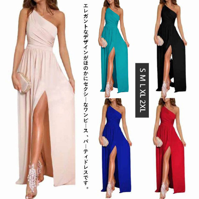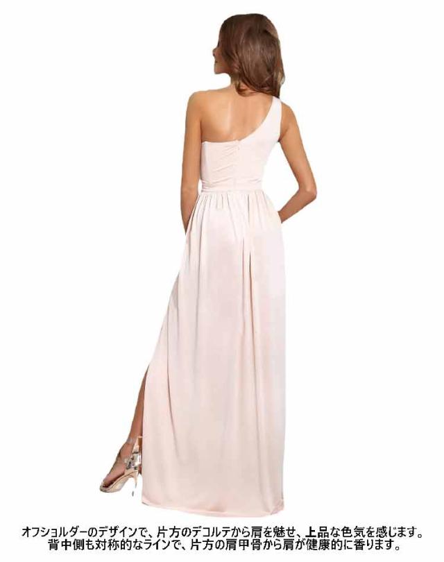 | エレガントなデザインがほのかにセクシーなワンピース、パーティドレスです。 オフショルダーのデザインで、片方のデコルテから肩を魅せ、上品な色気を感じます。 背中側も対称的なラインで、片方の肩甲骨から肩が健康的に香ります。 反対側のハイウエストのサイドには、軽くスリットが入り、左右のセクシー感のバランスを抑えています。 ハイウエストの位置から切り替わるフレアーなスカートで、スタイルアップして体型もカバーします。 プロント裾にはロングスリット入り、エレガントなムードを引き立てます。 躍る心を清楚な装いに秘めて、素敵なパーティでは華麗に舞ってください。 | |