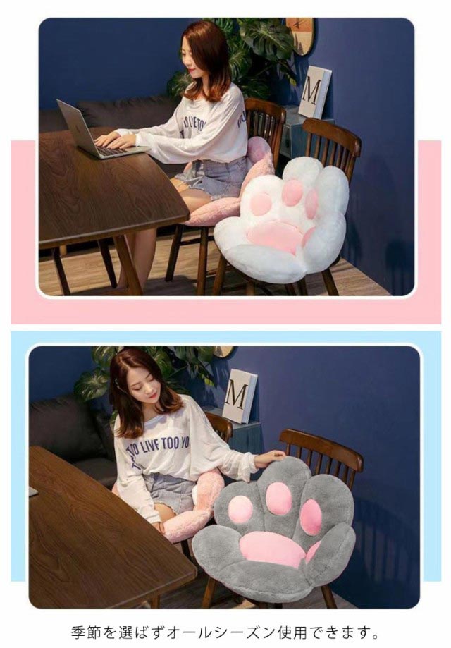| かわいいにくきゅうデザインのクッションです。 柔らかくて高い弾力があるの高弾性pp綿を使用し、体重を吸収・分散する。 通気性があり、長時間の使用や夏場でも蒸れにくく、快適な座り心地です。 肉厚クッションがお尻をしっかり支えてくれ、腰や背中への負担も軽減。 腰を下ろす時に、体圧を吸収、分散して身体を支えるので、圧迫感を感じません。 オフィス、ソファ、食卓、こたつ、車の座席などいろんな所で使えます。 座り方に身も心も癒され、寄りかかって座っても、うつ伏せになっても、横になって枕にしてもいいです。 季節を選ばずオールシーズン使用できます。 | |