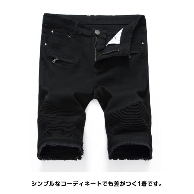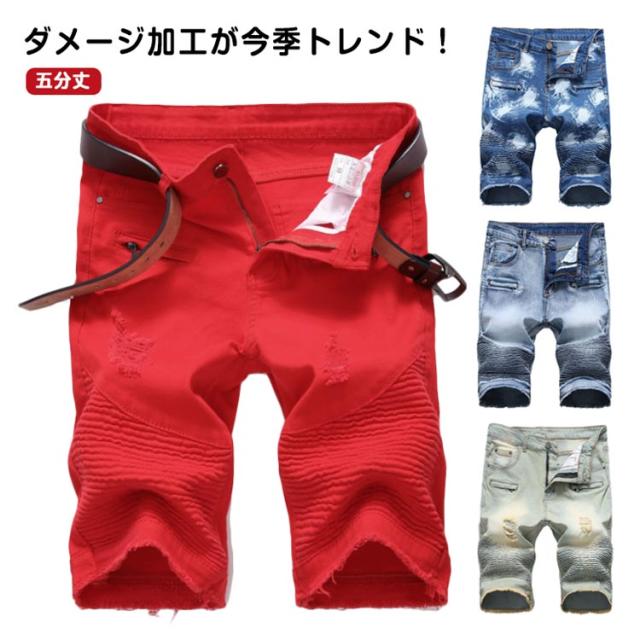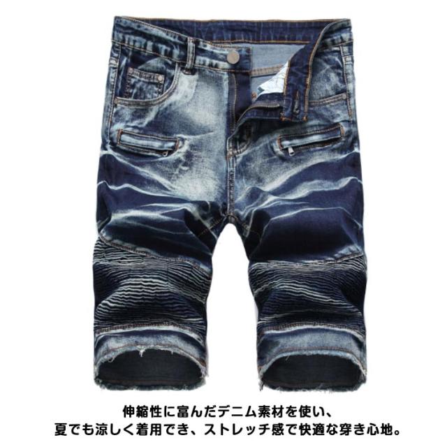 デニムパンツ メンズ デニムショートパンツ 膝上 短め スリム デニムショーツ ダメージ加工 デニム ショートパンツ 半ズボン 五分丈 ストリート 短パン ワークパンツ メンズボトムス ズボン 大きいサイズ