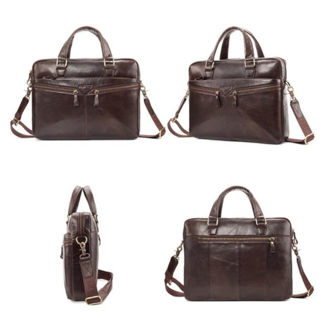 | 大容量でおしゃれな本革ビジネスバッグ。 専用ポケット付きで14インチノートパソコン収納可能 。 大容量でA4 書類も楽々収納。 ショルダースタイルでの移動も可能。 | |
