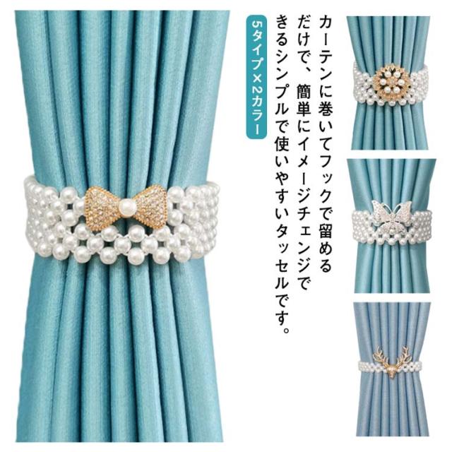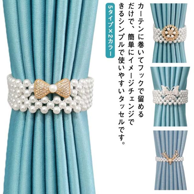 【 2本入り 】 5タイプ×2カラー 長さ約40cm カーテンタッセル 真珠 カーテン タッセル カーテン留め フック式 カーテンホルダー カーテンロープ 窓掛けロープ インテリア 部屋飾り カーテンアクセサリー