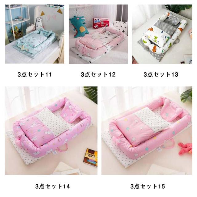 全20色 3点セット 枕 布団 ベッド 持ち運び取っ手付き ベッドインベッド 持ち運び ベビー ベッド ベビーベッド ベビー ベッドガード 洗える可能 転落防止 お出掛け 布団 枕 ベッド