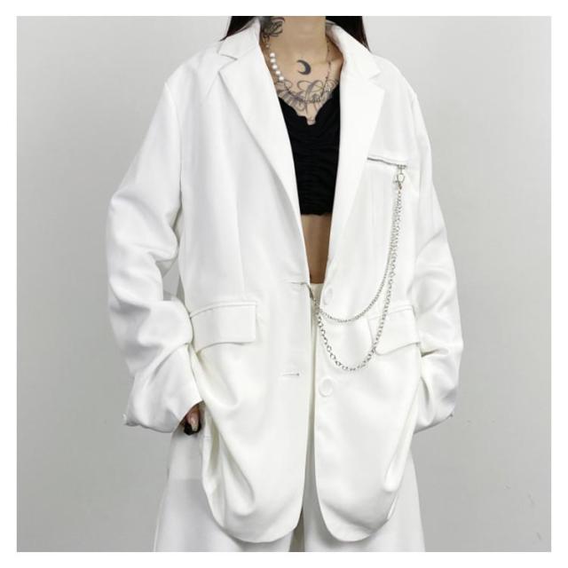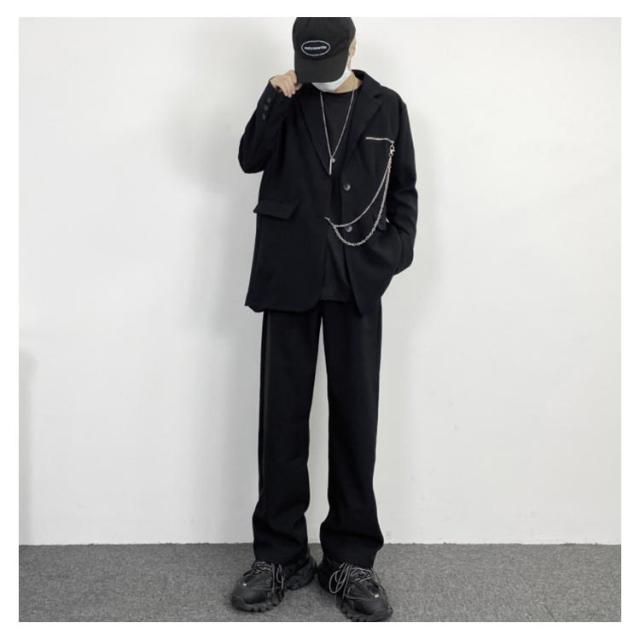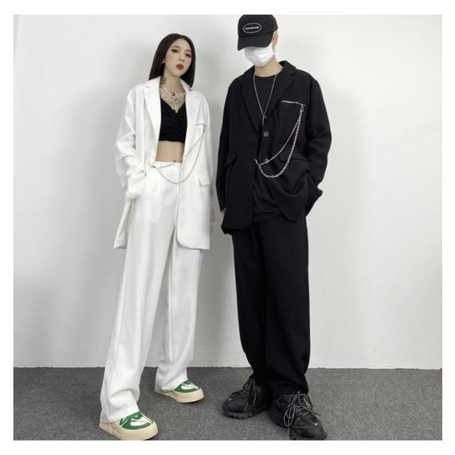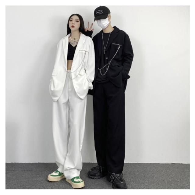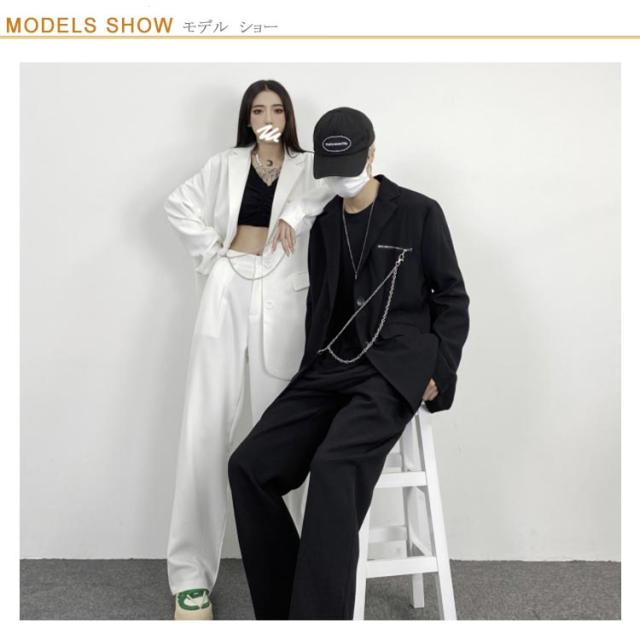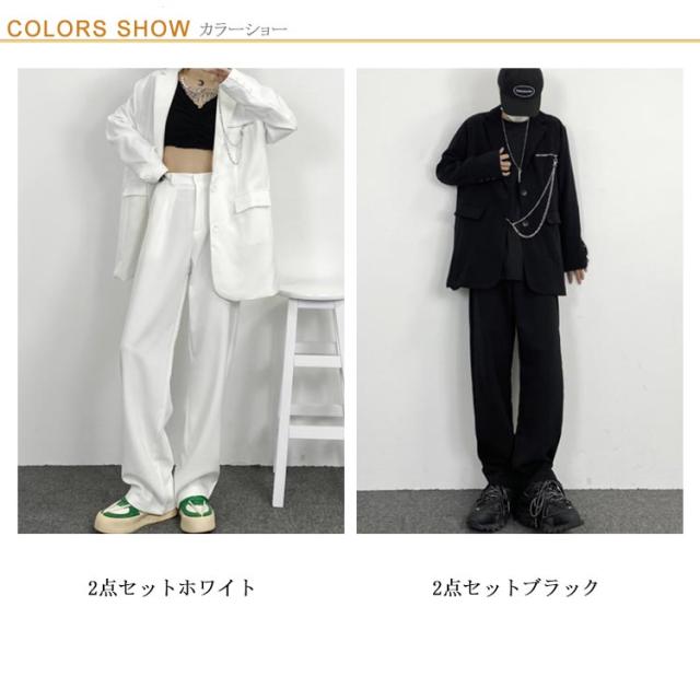 2点セット ダンス衣装 スーツ パンツスーツ 暗い ダンスパンツ ルーズでカジュアル ins風 韓国 ファッション イベント セクシー 個性 かっこいい おしゃれ ブラック ホワイト