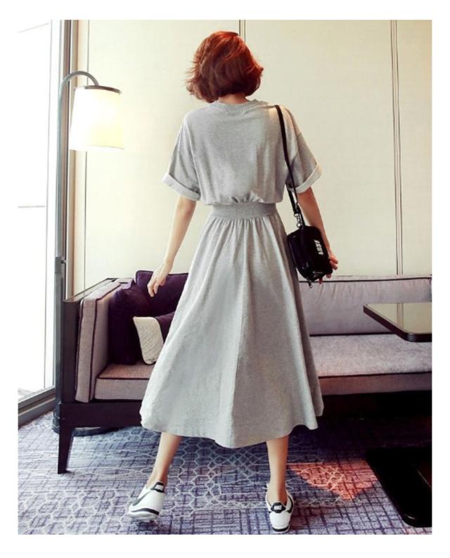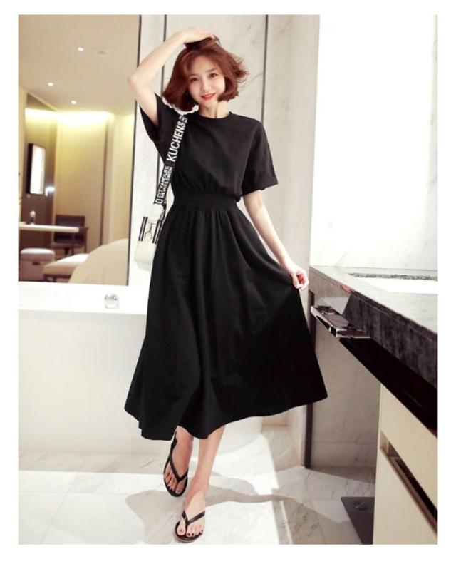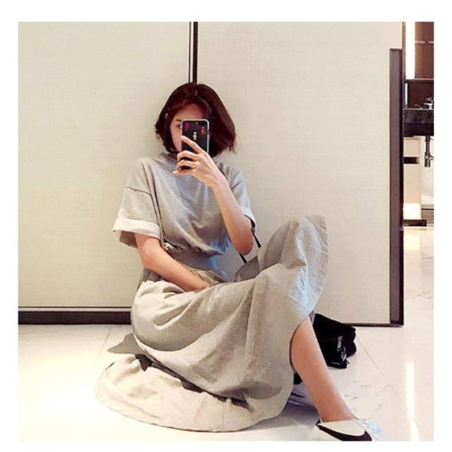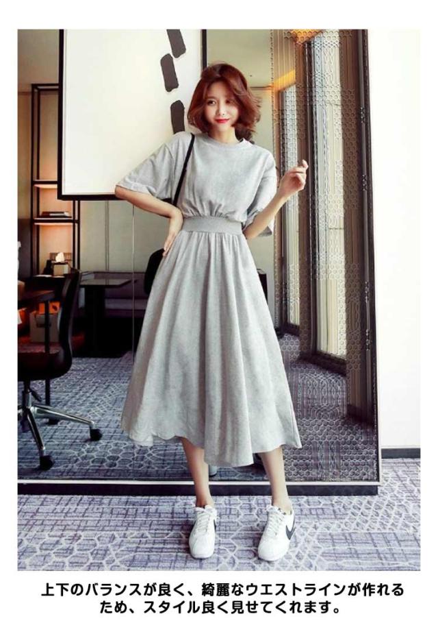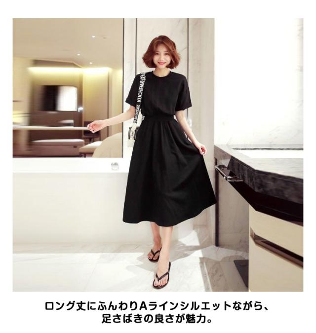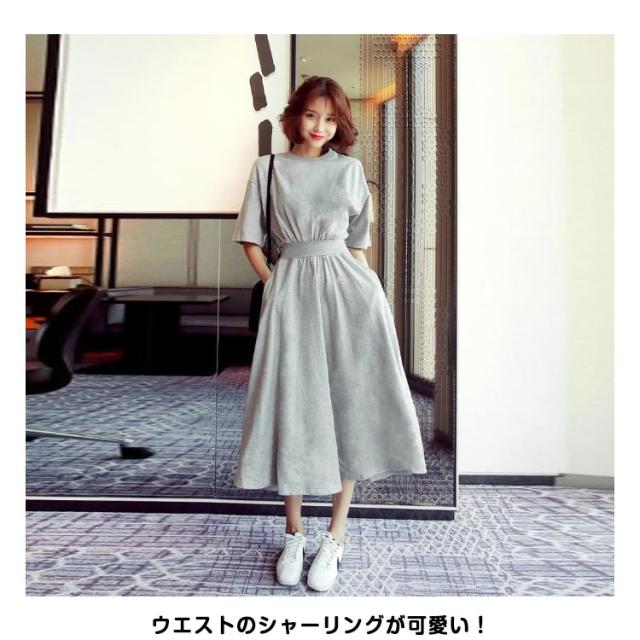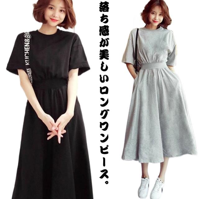 送料無料 半袖 マキシ ワンピース ウエストシャーリング ロングワンピース ロングTシャツ 半袖 クルーネック ウェストマーク 着痩せ Aライン 通勤 可愛い きれいめ 上品 ゆったり 体型カバー 大きいサイズ 無地 シンプル