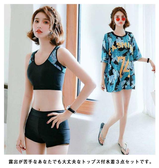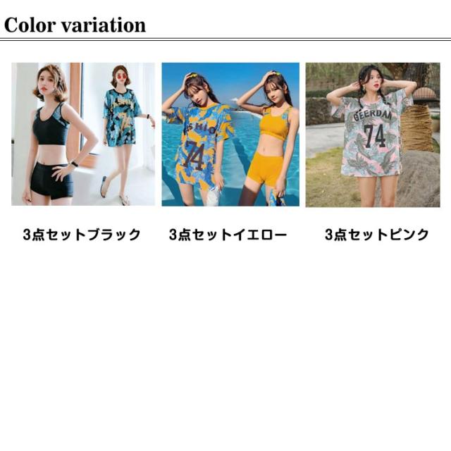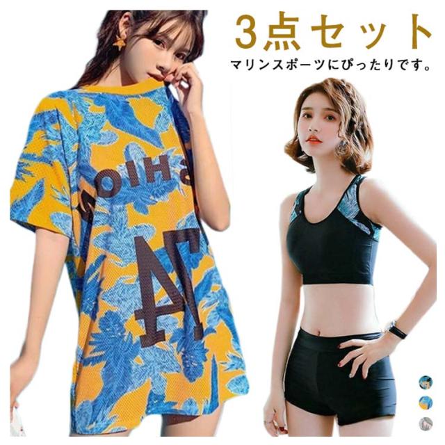 3点セット スポーティー タンキニ水着 レディース ビキニ ラッシュガード スイムウェア 上下セット 体型カバー 無地 スポーティー 女の子 小胸にも 夏 水着 韓国 フィットネス 大きいサイズ スポーツ ビーチ