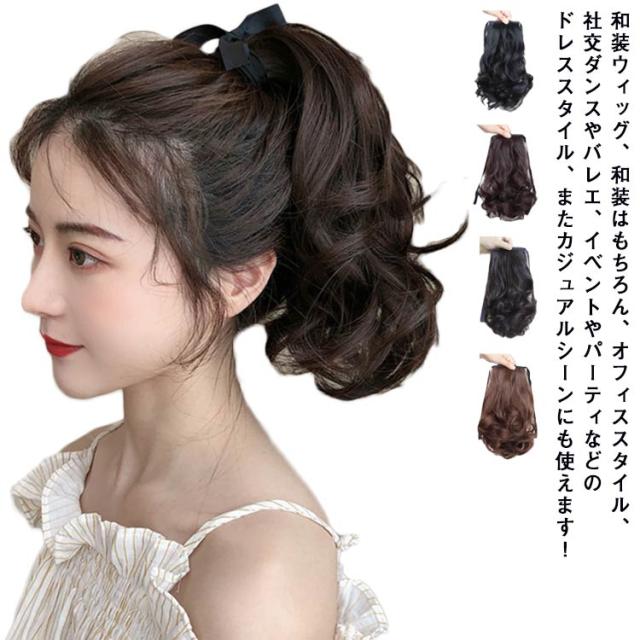 選べる4タイプ ポニーテール ウィッグ 自然 部分ウィッグ エクステ つけ毛 ひもタイプ かつら ウイッグ 和装ウィッグ 着物ウィッグ ナチュラル ウェーブ 浴衣 襟足 コスプレ 結婚式 ダンス 七五三 28cm 35cm 45cm 55cm