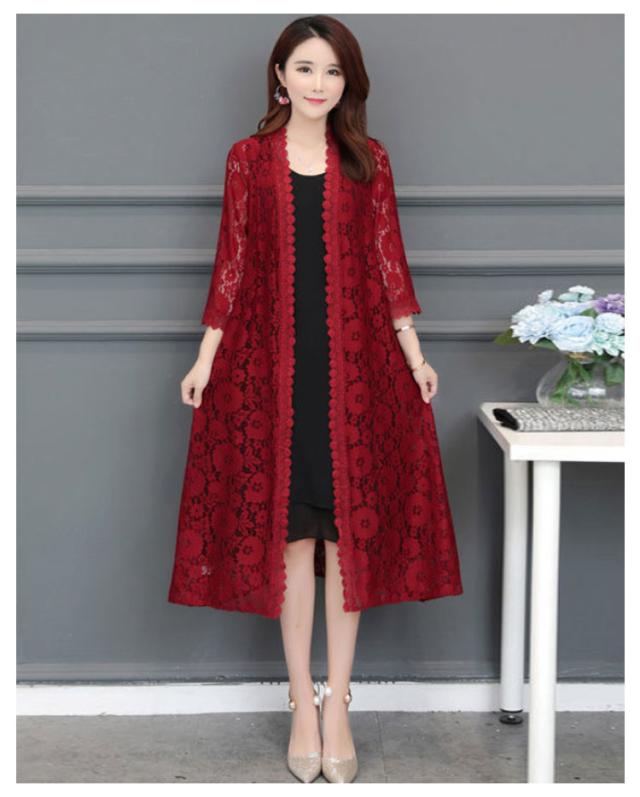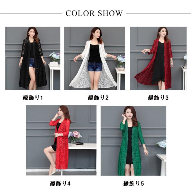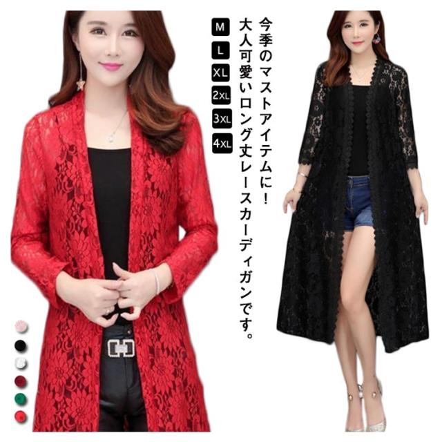 レースカーディガン レディース ロング丈 カーディガン 春夏 総レース 薄手 七分袖 透け感 ガウン シースルー ゆったり かわいい 大きいサイズ 着?せ M-4XL