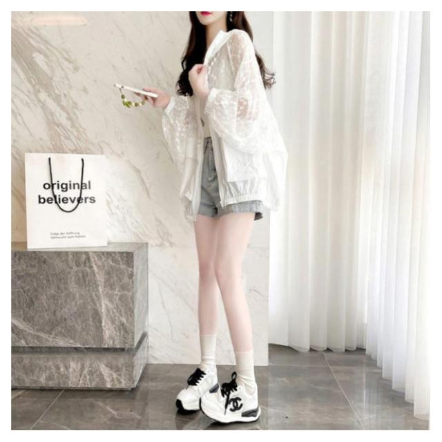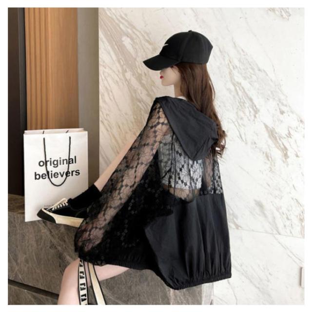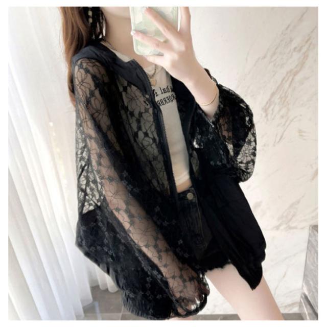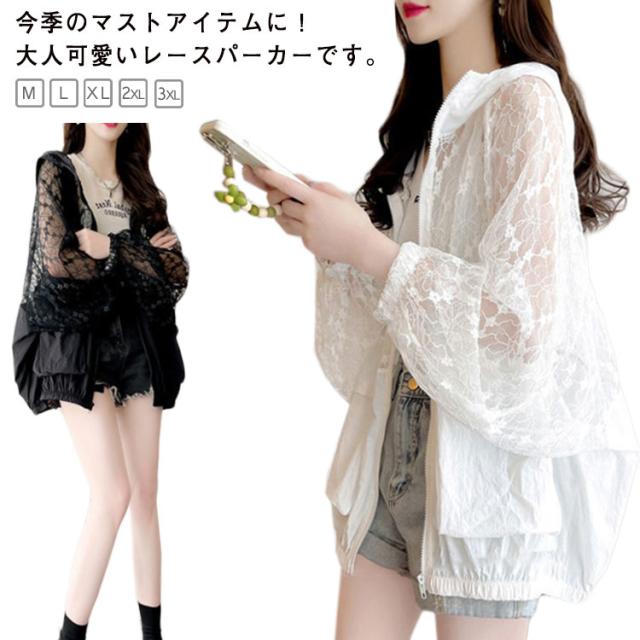 レース パーカー 薄手 レディース ジップアップパーカー フードパーカー トップス 夏パーカー フェミニン かわいい シースルー 羽織り UV対策 冷房対策 M L XL 2XL 3XL