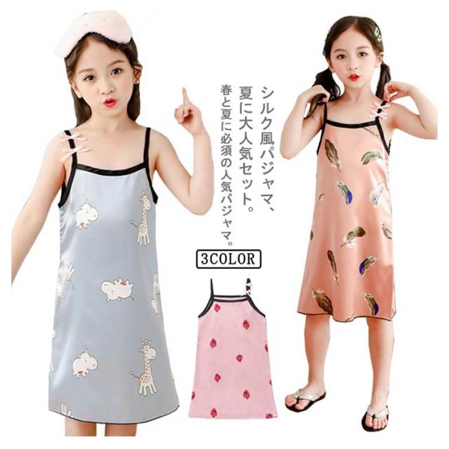 送料無料 キッズ パジャマ 子供パジャマ 女の子 夏 薄手 キャミソール シルク ノースリーブ ルームウェア 部屋着 無地 パジャマ かわいい おしゃれ 可愛い 寝巻き ナイトウェア 子供服 3タイプ 110 120 130 140 150 160