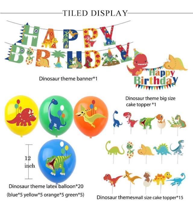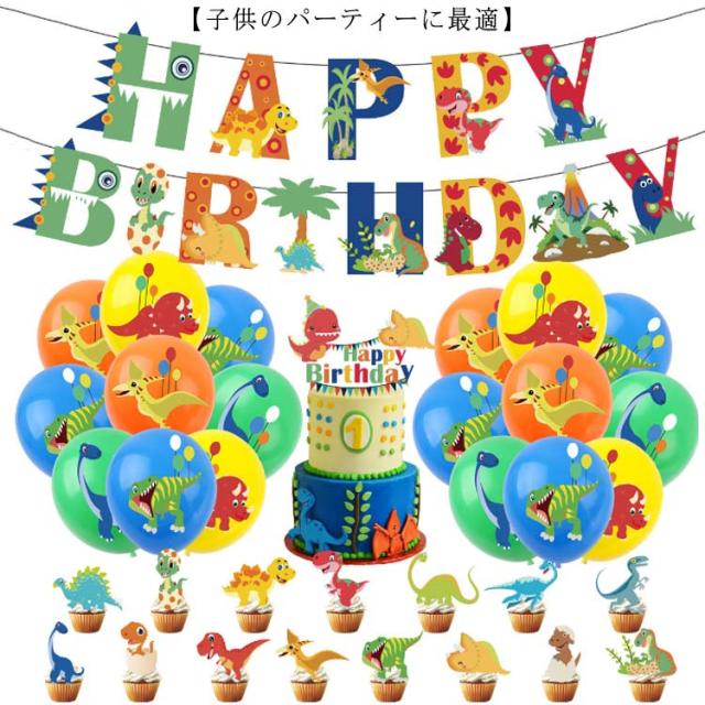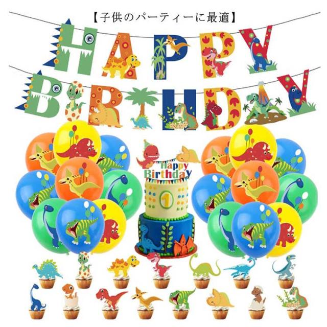 バースデーパーティーセット 恐竜テーマ 誕生日 パーティー 飾り 37点セット 送料無料 風船 バルーン ハッピーバースデーバナー ケーキトッパー 鮮やか 豪華 かわいい 女の子 男の子 飾りつけ 装飾 記念 出産祝い クリスマス プレゼント happy birthday