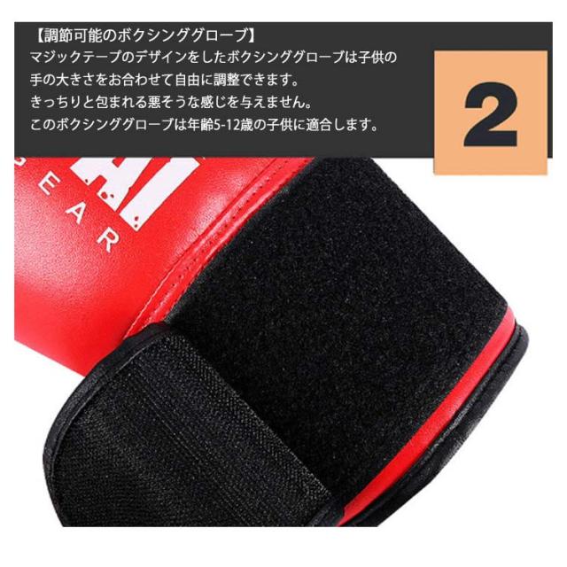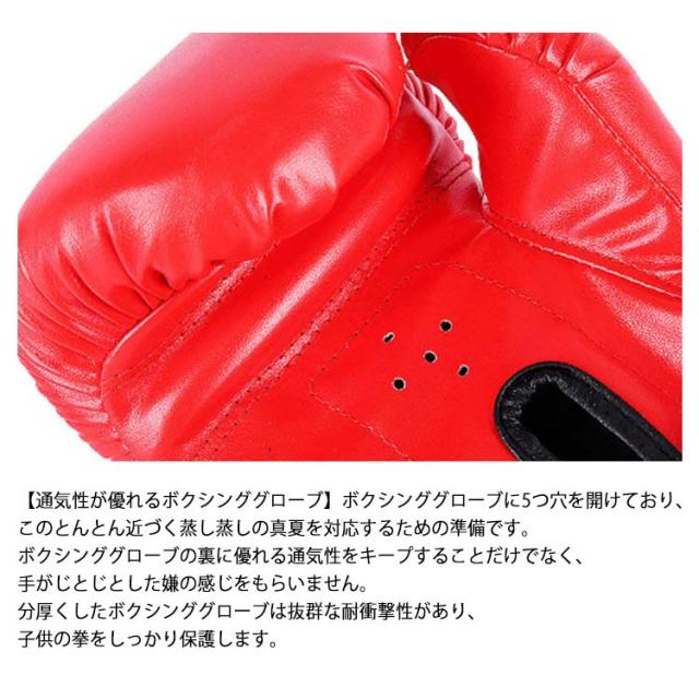 | 【子供と一緒に運動を楽しむボクシンググローブ】普段いたずらばかりの子供への運動用具は最適なものです。いたずらが好きな子供は全部の注意力をこのボクシングという運動項目に移してボクシングを楽しむことと共に汗をかきます。健康を保つ同時に子供の趣味を育ちます。子供と一緒に楽しい運動に投じます。 【通気性が優れるボクシンググローブ】ボクシンググローブに5つ穴を開けており、このとんとん近づく蒸し蒸しの真夏を対応するための準備です。ボクシンググローブの裏に優れる通気性をキープすることだけでなく、手がじとじとした嫌の感じをもらいません。 分厚くしたボクシンググローブは抜群な耐衝撃性があり、子供の拳をしっかり保護します。 【調節可能のボクシンググローブ】マジックテープのデザインをしたボクシンググローブは子供の手の大きさをお合わせて自由に調整できます。きっちりと包まれる悪そうな感じを与えません。このボクシンググローブは年齢5-12歳の子供に適合します。 【ボクシングミットセット】2つのボクシングミットが付属されるので、子供に付き合ってスパーリングを練習します。子供を丈夫な体つきに鍛える共に良好の健康を保ち、親子の感情を促進します。 | |