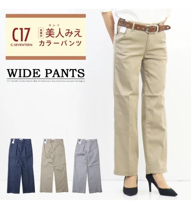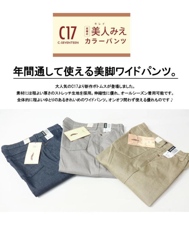 C17 レディース LACHIC ワイドパンツ ストレッチ C-SEVENTEEN C-17 シーセブンティーン 送料無料 CL005
