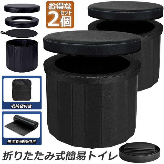 簡易トイレ 2個セット 非常用 災害用 テント 水洗 ポータブルトイレ 折りたたみトイレ 携帯トイレ トイレ キャンプ 耐荷重150kg 洗えるプラスチック製 防災トイレ 仮設 トイレ 車載 介護 かんいといれ 防災グッズ 車中泊グッズ 便座一体型 持ち運び 組立簡単