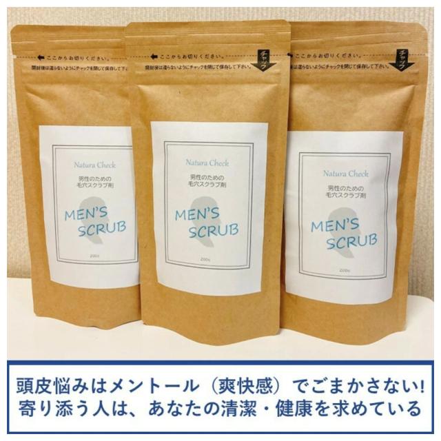 ナチュラチェック メンズ 頭皮用スクラブ 200g スクラブ剤 頭皮 無着色 防腐剤無添加 無添加 無香料 パウダー 天然由来 自然由来 敏感肌 乾燥肌 重曹 送料無料
