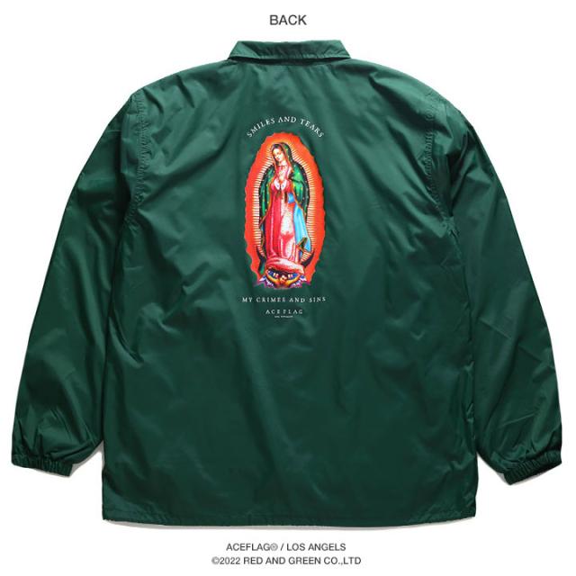 【70%OFF】ACEFLAG アウター 長袖 コーチジャケット ブルゾン メンズ 緑/黒 大きいサイズ エースフラッグ ナイロンジャケット バイク バイカー 聖母 マリア 聖母マリア b系 ヒップホップ ファッション ダンス ストリート系 ブランド 服 AF-TL-OU-006