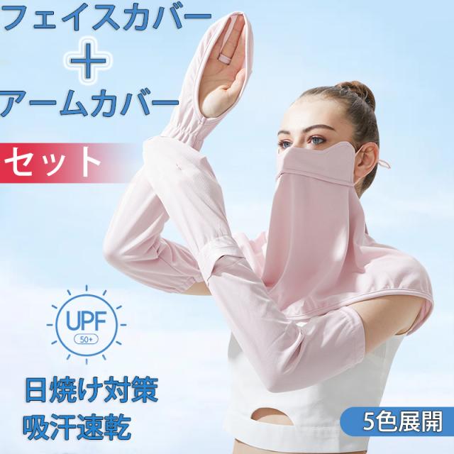 フェイスカバー アームカバー セット UVカット 接触冷感 息苦しくない レディース フェイスマスク ネックガード フェイスガード ひんやり 洗える 手袋 通気 アウトドア 紫外線防止 日焼け対策 日よけ ランニング サイクリング ゴルフ テニス アウトドア