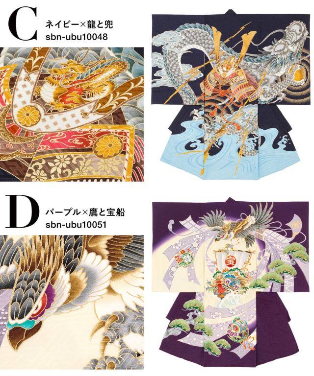 お宮参り 産着 初着 男の子 男児 祝い着 パープル ネイビー ブラウン ホワイト 紫 紺 白 風神雷神 龍 牡丹 宝船 和柄 ポリエステル 子供着物 赤ちゃん 着物 長襦袢付 販売 創美苑 送料無料