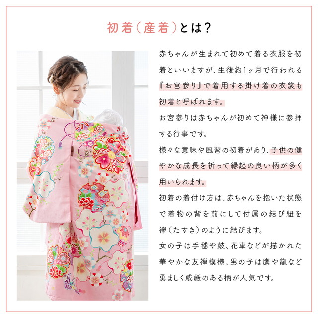 赤ちゃんのお宮参りを素敵に彩る【高級初着(産着)・下着(長襦袢)】のセットです。
