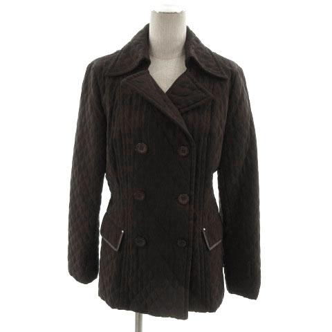 【中古】自由区 オンワード樫山 コート ピーコート Pコート ダブル キルティング 中綿入り ラインストーン ブラウン 茶 38 レディース