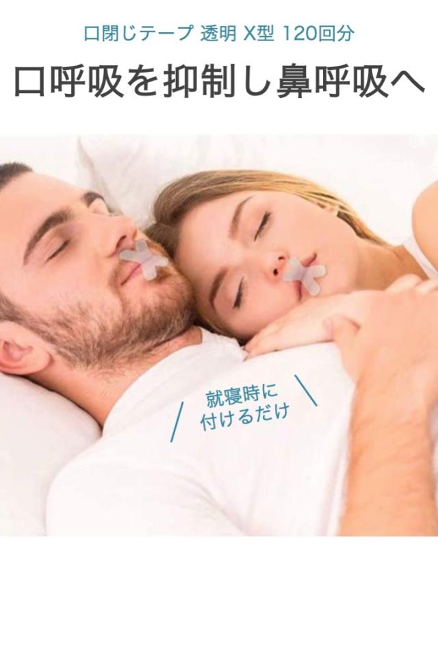 商品名:口閉じテープ 透明 X型 120回分 マウステープ いびき 軽減 鼻呼吸 口閉じ 安眠 おやすみ テープ 口呼吸 のど 乾燥 抑制 サポート 簡単 貼り付け シンプル
